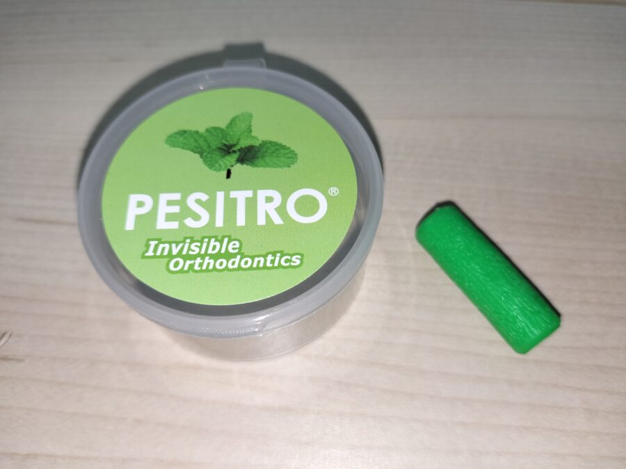 歯磨き後や食事後に、再装着する際に、緑のゴムを噛みしめる必要があります。